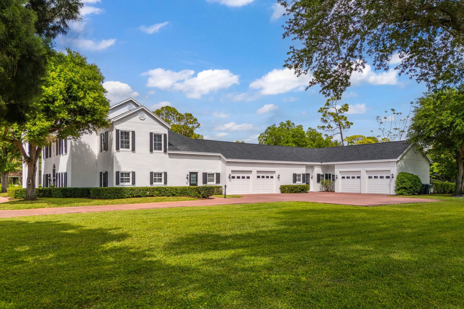 Experience the epitome of luxury in this meticulously maintained two-story colonial architecture style estate with its graceful symmetry, stately elegance and modern flair nestled on 1.24 acres. Built in 1999 this spectacular residence features 6 bedrooms, 4.5 bathrooms, guest house, 4-car garage, workshop, resort style pool with outdoor shower, enclosed lanai, 5,137 living SF, 6,913 total SF, mature oak trees and lush clusia hedges situated on a corner prime lot in the distinguished community of Paddock Park 1 in the heart of Wellington with no HOA. As you step inside you are greeted by greatness, an elegant foyer with a gorgeous chandelier, electric sconces and plantation shutters throughout, a stylish dining room, a flex room, a spacious cultivating living room with gas fireplace. A sophisticated primary suite with a spa-like ensuite with vanity, soft lights, dual sinks, jet tub, separate shower, toilet room, walk-in closets and a door going out to the lanai. Moving along to the second story you will find hardwood floors throughout, four spacious bedrooms, large closets, two dual-access en-suite bathrooms, a mezzanine gallery with open windows blending a curated artistic space with natural light. As you step out onto the screened in covered lanai you will see a resort style oversized pool with outdoor shower, expansive yard for entertaining, guest house with one bedroom, one bathroom, living room, dining room, kitchen and laundry. This property is equipped with top-tier systems for comfort and peace of mind, including a full-house generator, propane tanks, impact windows, impact doors, shutters, Roof 2024, four A/C zones, clean-air UV lighting in all A/C units, four water heaters, underground propane tanks, alarm and camera system, electrical gate, dog electric fencing, lengthy paved driveway with attached 4-car garage. This well-appointed estate delivers a sense of grandeur and sophistication, where distinctive architecture meets elevated modern living.